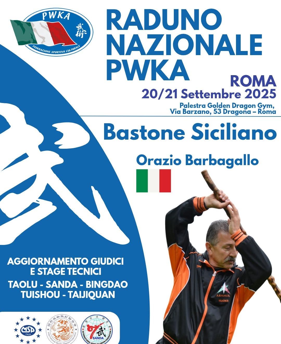 Il 20 e 21 settembre a Roma il raduno nazionale dei Maestri PWKA di Arti Marziali: il Maestro Orazio Barbagallo sarà protagonista con il Bastone Siciliano Ott 6, 2025